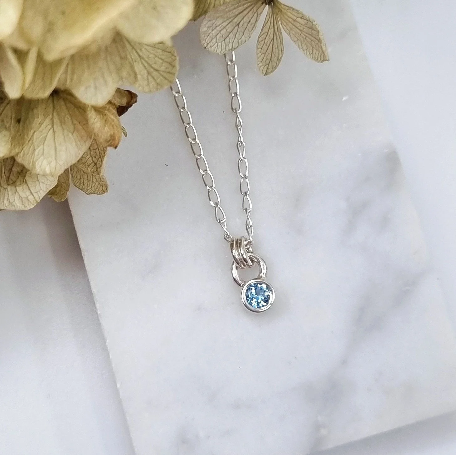 Harriet - Sterling silver charm necklace, set with 0.16ct aquamarine