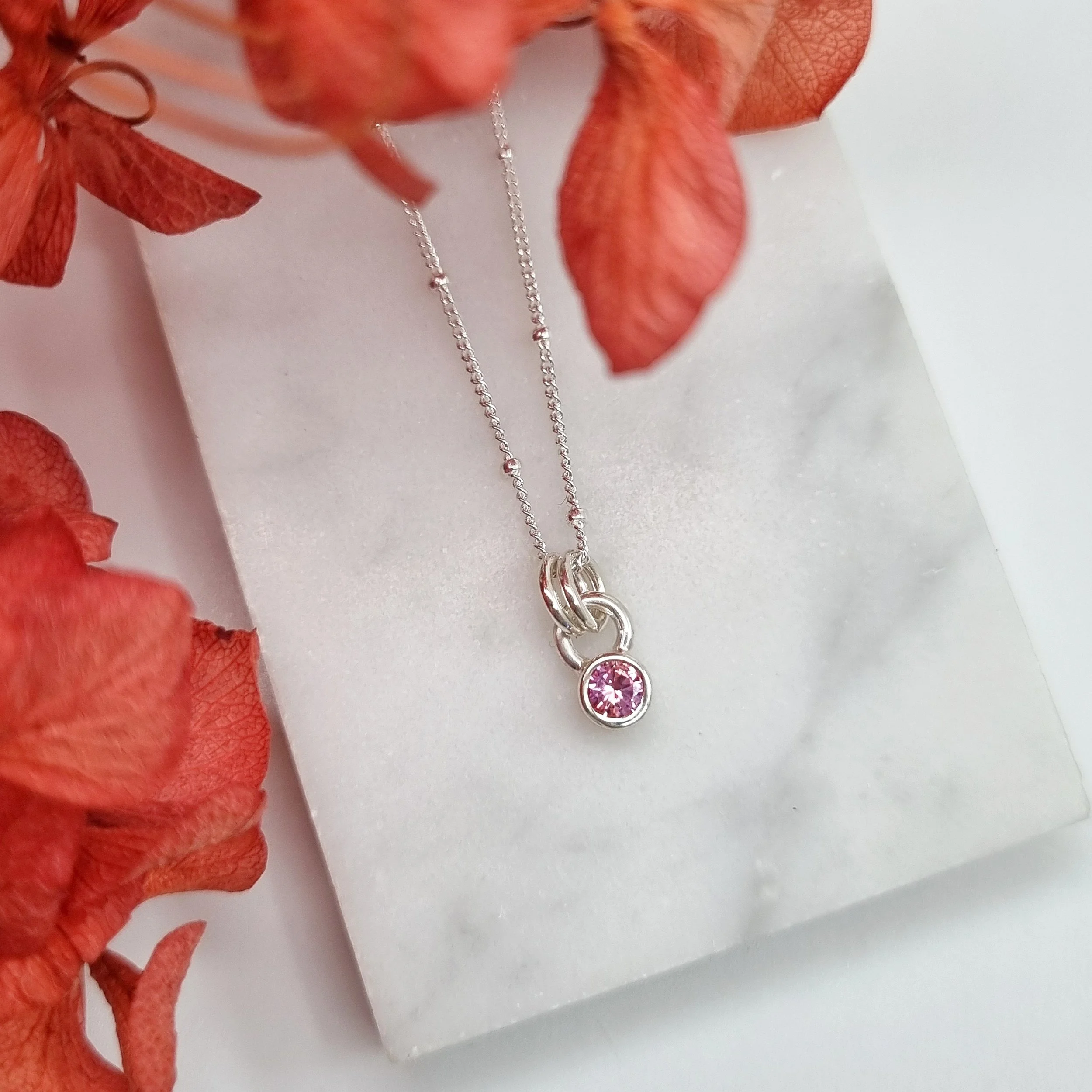 Elodie - Sterling silver charm necklace, set with 0.18ct pink sapphire